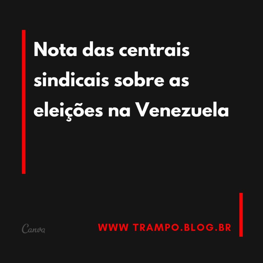 As Centrais Sindicais CUT (Central Única dos Trabalhadores), Força Sindical e CSB (Central dos Sindicatos Brasileiros) saúdam os trabalhadores e as trabalhadoras venezuelanos pela realização soberana e democrática da eleição presidencial realizada no último dia 29 de julho.