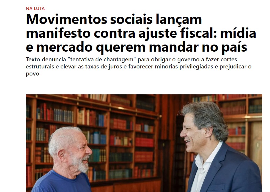 Ontem (terça, 12 nov) o site da CUT divulgou a adesão ao manifesto. Enfim…o que importa, na minha opinião, é que os movimentos sociais se manifestam e tentam neutralizar as chantagens do mercado financeiro sobre o govwerno Lula. Leia abaixo :