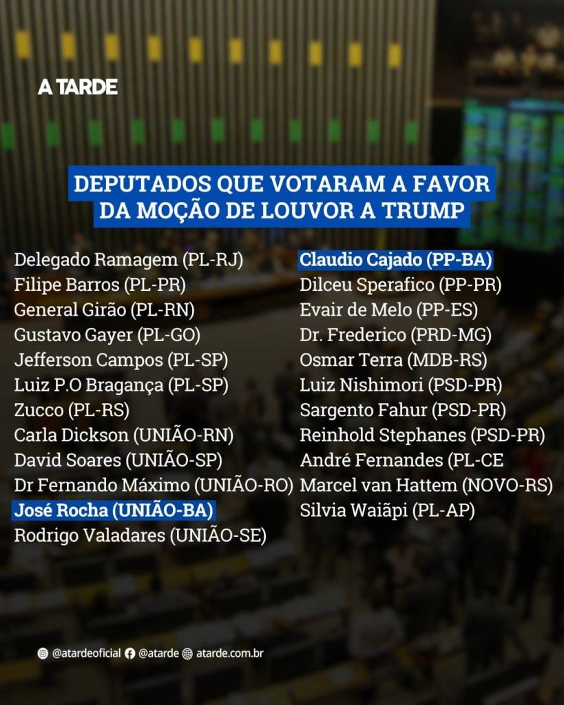 Fora do tema do blog mas me parece necessária. Subimos a hashtag #congressoinimigodopovo mas precisamos acompanhar cotidianamente o que fazem nossos deputados. E a imprensa nos conta que a Comissão de Relações Exteriores da Camara dos Deputados votou moção de louvor ao Presidente Donald Trump….horas antes da decretação do tarifaço.