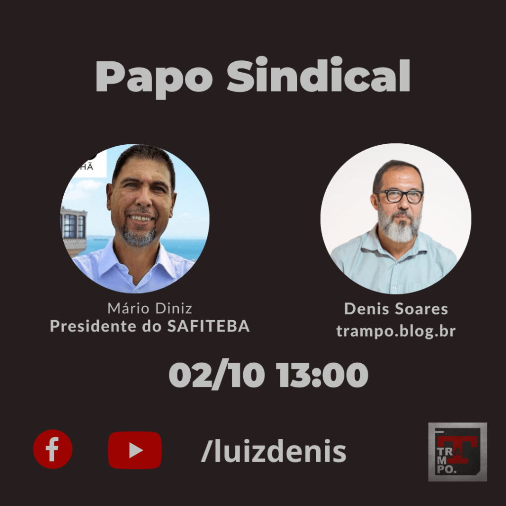Mais detahes e como resistir a mais este ataque ? É o que vamos debater com Mário Diniz, advogado, auditor fiscal do trabalho e vice presidente do SAFITEBA nesta quinta, 2 de outubro, 13 horas pelo nosso canal no YouTube e perfis no Facebook e Linkedin.