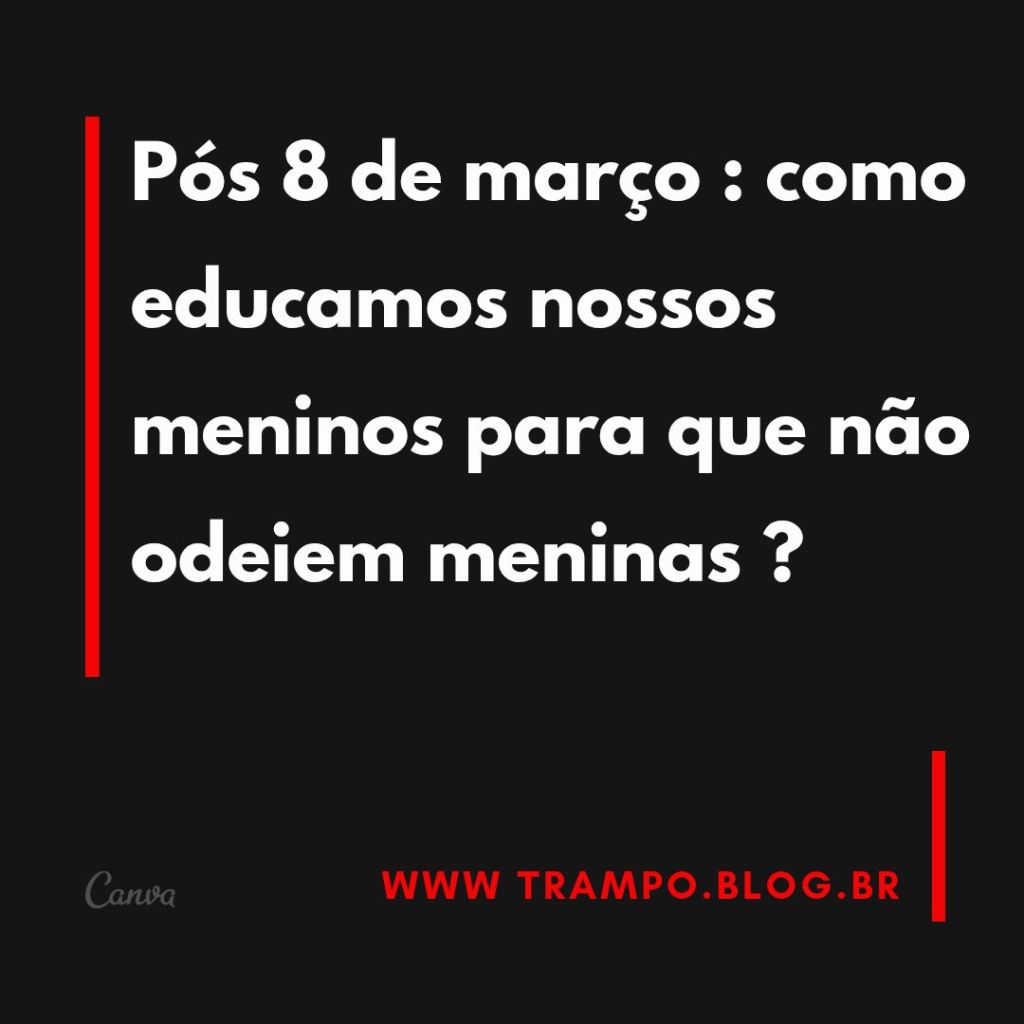 Passadas as comemorações do 8 de março, Dia Internacional da Mulher, voiltamos à vida real. Me chama a atenção a resitência em pautarmnos o debate sobre a violência de gênero e processos formativos. Principalmente para nossas crianças e jovens. Recomendo a audição do podcast que inspira o título desta postagem.